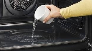1PASO 1Vierte 100 ml de agua en el fondo de la cavidad del horno antes de encender el horno.