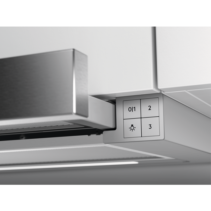Campana extraíble «Line Up» de 60 cm con tres niveles de potencia, potencia máxima 440 m3/h y nivel de ruido de 60 dB(A), iluminación LED, INOX